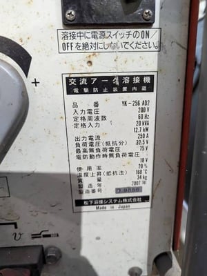 入力電圧:200V、定格周波数:60Hz、出力電流:250A、負荷電圧:32.5V、
