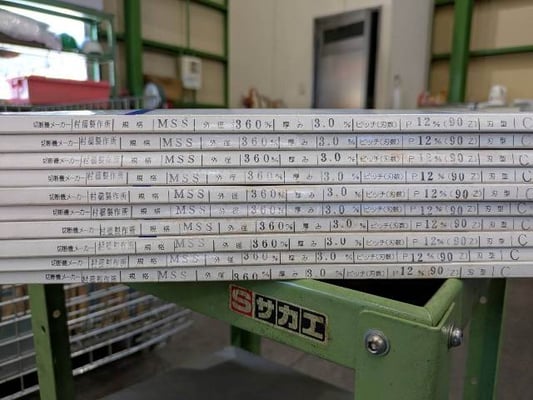 村橋製作所、外径360m/m、厚み3.0m/m、ピッチ:4 刃型BW(20枚)、6 刃型C(20枚)、