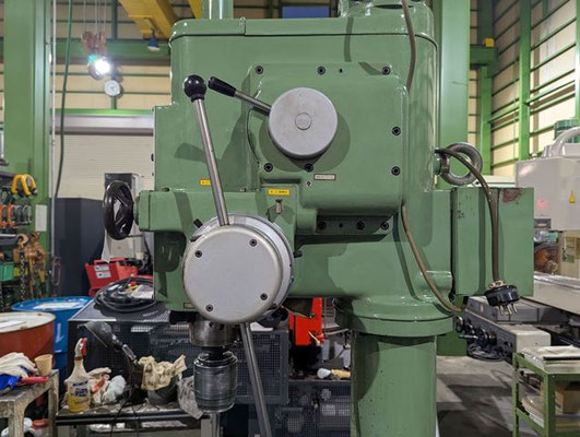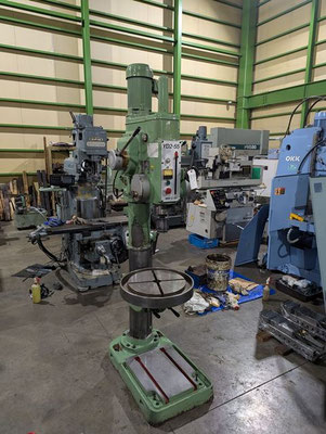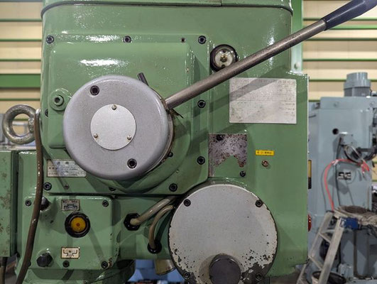 穴あけ能力:鋼40/鋳鉄50mm、ネジ立能力:鋼M24/鋳鉄M30 振り:550mm、主軸の上下移動距離:自動180mm/手動220mm 主軸穴テーパ:M.T.NO.4、テーブルの大きさ:510φ テーブル上下移動距離(手動):500、ベースの大きさ:500*900、総高さ:2200、重量650 |