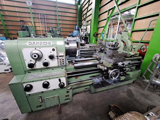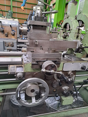 付属品:固定振れ止め2個、ベッド上の振り:630、芯間:1500、貫通穴:54mm、 心押し軸の穴:MT.No5、心押軸ストローク:200、重量:2600kg |