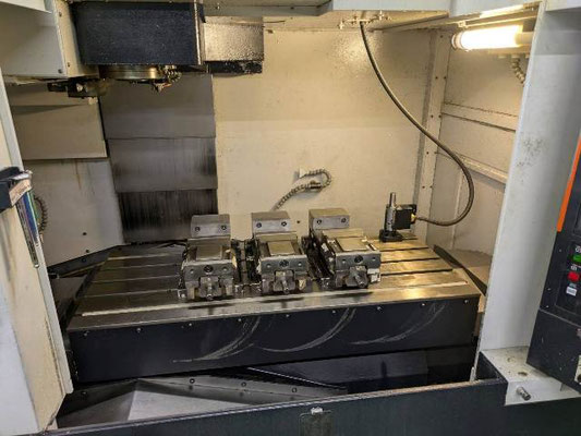 640M ConSepチップコンベアー付属 テーブル:1300×550、 主軸テーパ穴:7/24 テーパNo.40、主軸速度:35~15000、 作業テーブル寸法:1300×550、テーブル最大積載質量:1200㎏、 工具収納本数:30本、ツールシャンク:MAS BT-40、 機械寸法:H2801×W2880×D3043、機械質量:7450㎏ス |